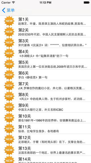 3.完成率达到80%即可过关,同时开启5个关卡(最多同时开启35关),实在答不出的题可以晾在一边,新玩家同时开启15个关卡;