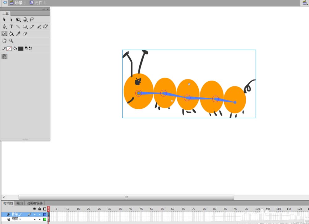 简介 flash怎么使用骨骼工具制作爬行的毛毛虫动画?_Flash实例教程_Flash教程_媒体动画_